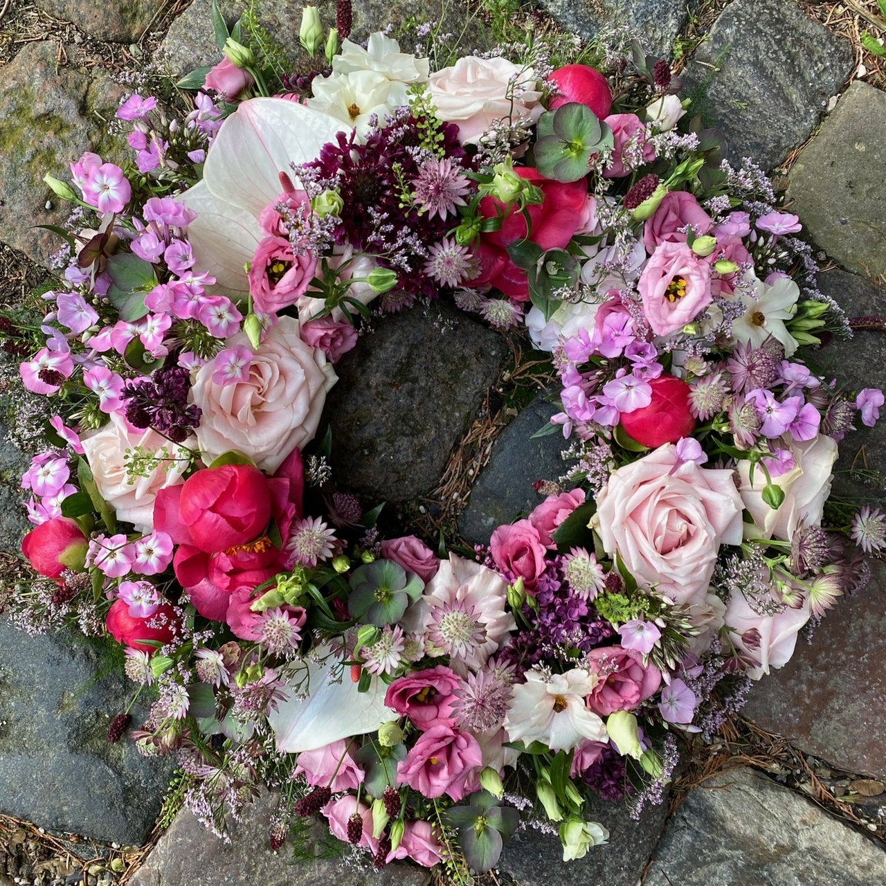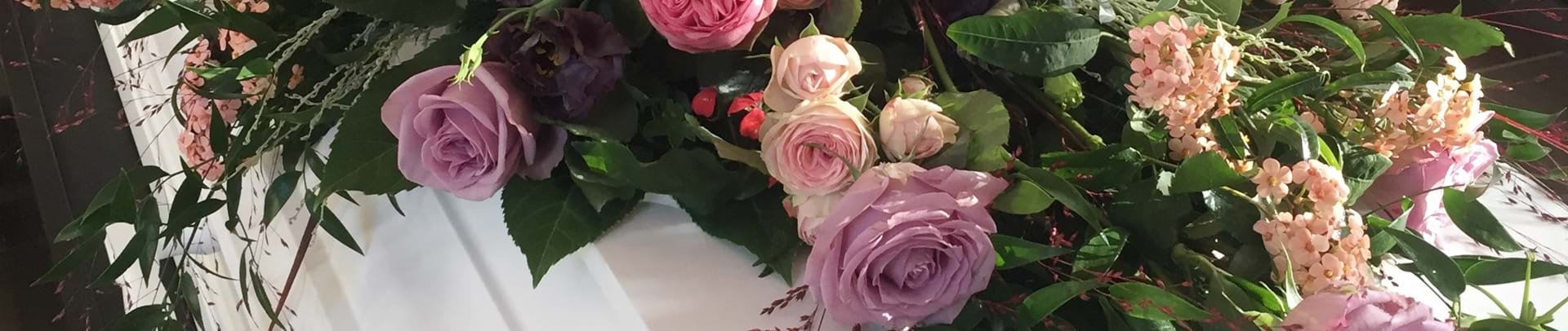Kom ind og se vores store udvalg af begravelses buketter, kistepynt og kranse eller ring til os.