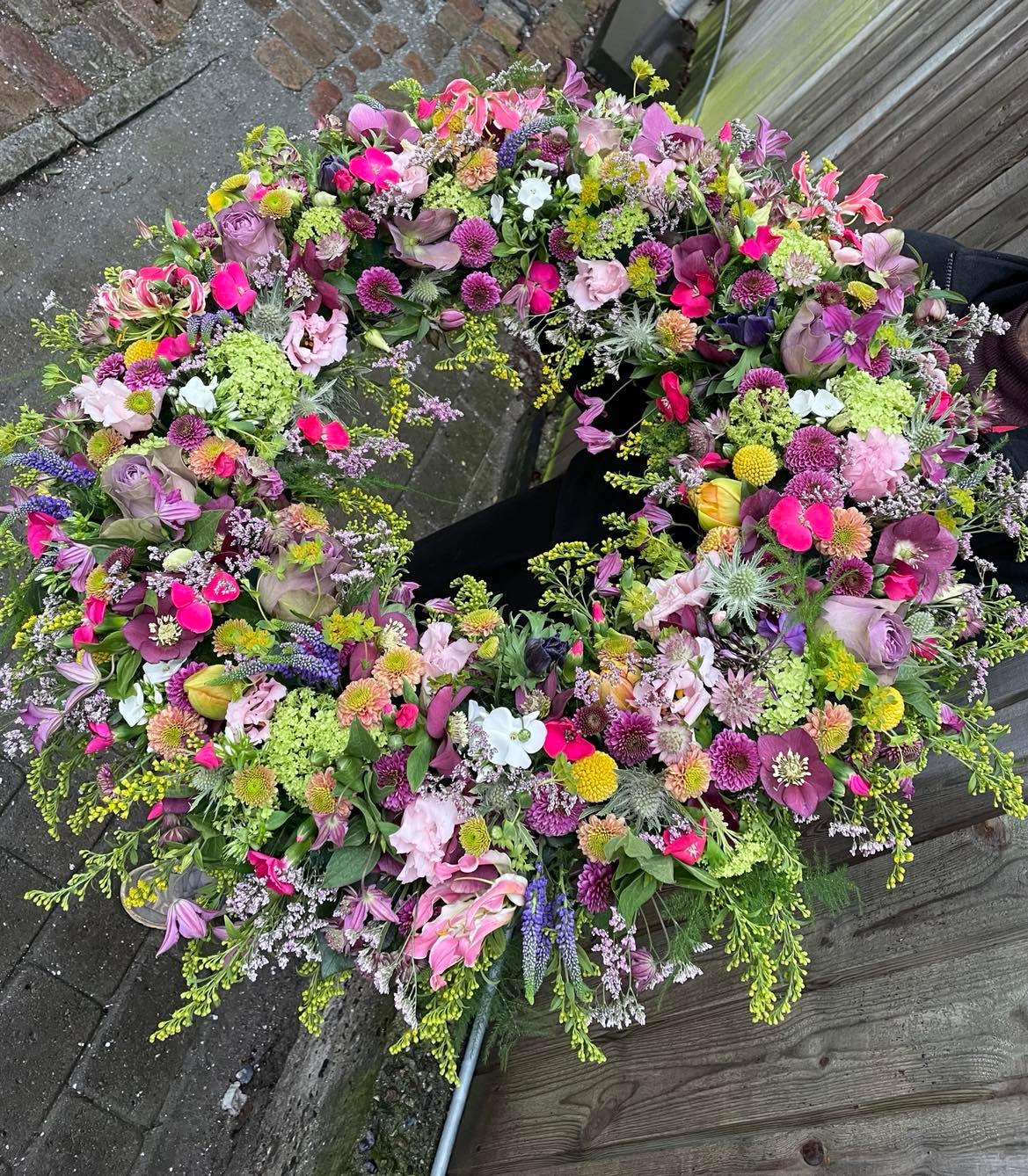 Kistepynt og bårebuketter til begravelser fra Warmdal Blomster i Valby.